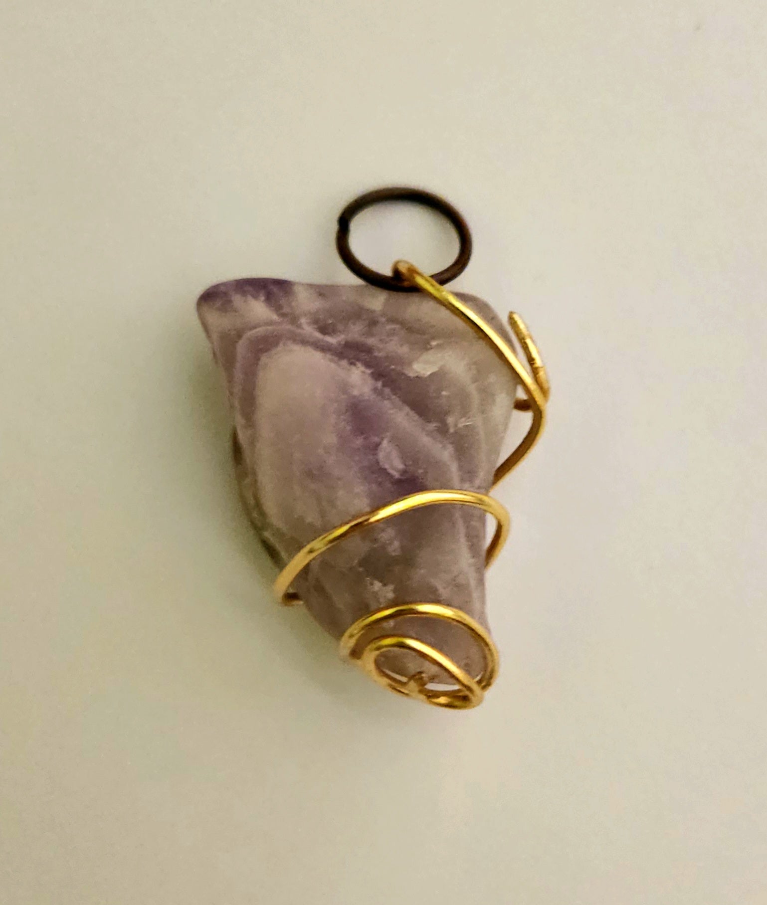 A rock I remembered the name of! Tumbled and wrapped in brass wire, ready to be a part of a bracelet, necklace, or earing.